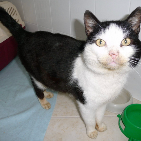 Tento kocúrik bol prijatý pôvodne ako gravidná mačka, ktorá mala čo nevidieť rodiť. Ukázalo sa však, že v skutočnosti ide o objemnejšieho kocúrika, ktorý sa hlučným mňaukaním domáhal vstupu do domu našej klientky. Kocúrik dostal meno Leon.